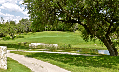 Today was a sparkling, air cleared of pollen after the rains, spring day, a perfect day for a round of golf. The picture above is a shot of the 12th green at Scott Schreiner Golf Course in Kerrville, TX, where I played. You’re looking back at the 12th green from the 13th tee. The 12th fairway runs off to the left of the photo, so you approach the green from over the pond on the left edge of the picture.